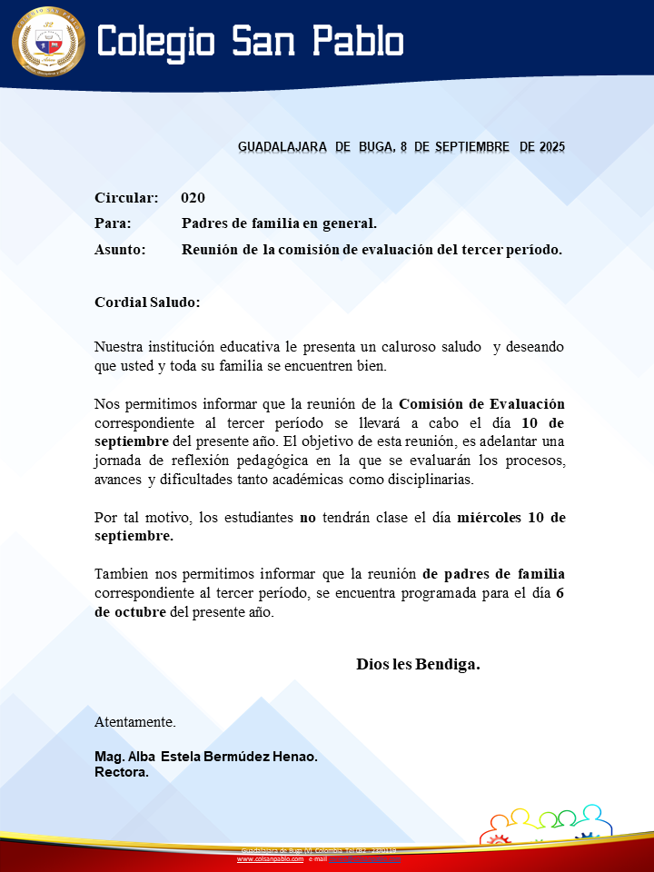 Circular 020- Reunión de la comisión de evaluación del tercer período